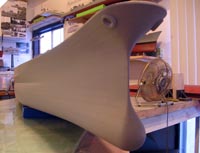 The hull master built in 1996, made of ¾ pine and planked with ¼ red wood with 1/16 fiberglass skin. Master will have plaiting detail going into the mould. Hull will be fiberglass with polycarbonate and plex deck.