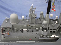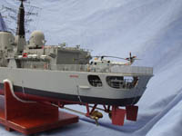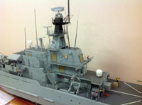 The model is 1/48 scale, has several working items such as lights, gun mount, RIB Davits, radar, anchors and sound unit. A part from the Hull which was purchased from SIRMAR FITTING, the model is scratch built.
