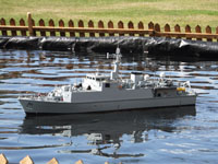 The model is constructed from a SIRMAR hull of the class lead (Sandown ownership) Once again 95-99% of the fitting are self-made She is powered using a Graupner Voith Schneider unit with a speed 600 motor.