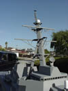 the CIWS and the stacks. Note the temporary protective case around the ship.