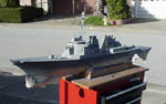 In this shot, the deck has been installed, but not painted. You can see the internal hull cross bracing.