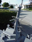 June 2003 - It has been a while since I have had a chance to work on the old girl, but I hope to get some done over the summer. Starting with detailing the 02 level in front of the bridge, with the Unrep Gear. I built these out of brass, plastruct tubing for the hose (groved in the lathe with a wood chisel before heating and bending) and Evergreen strip styrene.