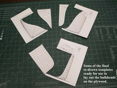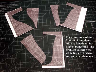 Now the fun begins. Cut out the bulkhead templates from the poor copies as well as you can.
