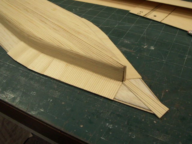 I know this method may be re-hashing old information, and I don't mean to bore you with it. However, in all my travels and observations of ship model building methods I have never seen anyone promote this particular way of producing a hull. I have listened many times to people talk or write about building a hull, and all the time it took for them to shape and finish it, and how careful they had to be in the process. Yet, None of them seem to have ever thought about doing it this way. Maybe it is the extra trouble of laminating the blocks, or whatever, but if you think about it, the amount of time you spend producing a block to carve a hull from this way actually reduces the amount of time you spend in the long run because of the built-in visual references that you will not have to keep plotting on a plain block of wood.